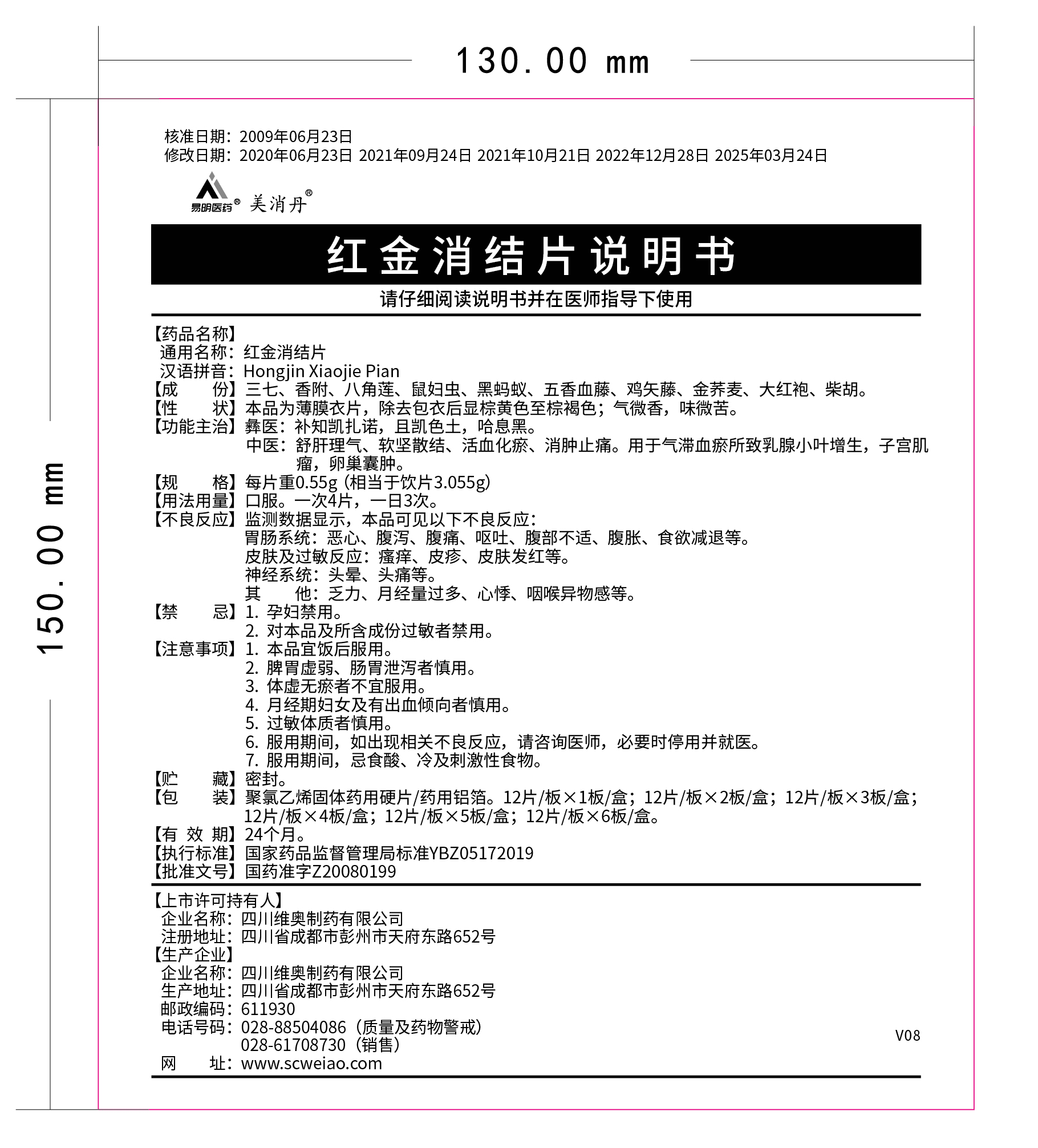 我司對紅金消結(jié)片說明書(批準(zhǔn)文號:國藥準(zhǔn)字Z20080199)進(jìn)行修訂